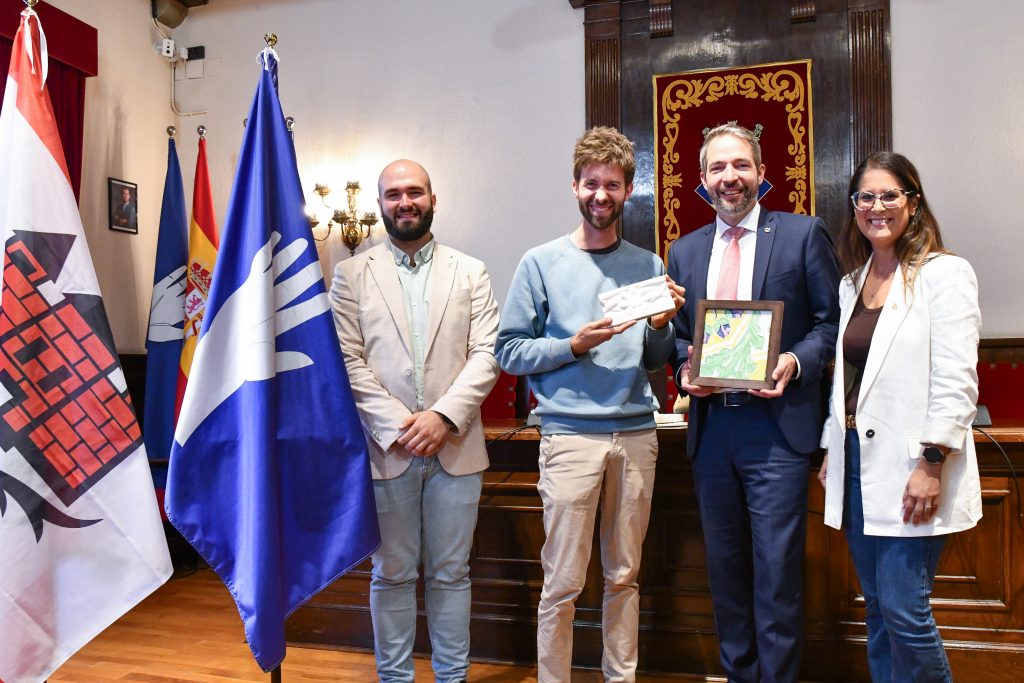 Der Ahrensburger Bürgermeister Eckardt Boege und unser Dirigent Sönke mit Gastgeschenken der Stadt Esplugues