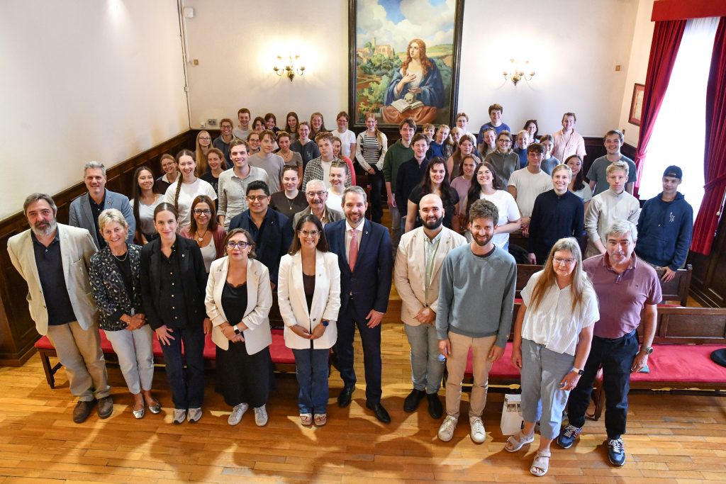Wenige Stunden nach unserem Laeiszhallenkonzert konnte man am Hamburger Flughafen in viele müde, aber gespannte Gesichter blicken, denn es ging für uns nach Spanien. Um 4:30 Uhr war Treffen angesagt, um 7:35 Uhr hob unser Flugzeug gen Süden ab. Nach der Ankunft im warmen Barcelona fuhren wir mit einem Bus nach Esplugues de Llobregat, einer der Partnerstädte Ahrensburgs. Dort angekommen checkten wir zunächst im Hotel ein, danach ging es auf zur ersten Erkundung Richtung Stadtmitte, wo wir uns mit Tapas stärkten. Nach etwas Freizeit ging es zum Rathaus, wo uns Politiker:innen der Stadt Esplugues zusamen mit Ahrensburgs Bürgermeister Eckart Boege im historischen Saal des Gebäudes feierlich in Empfang nahmen. Nach verschiedenen Reden, die vor allem die Bedeutung kultureller Begegnungen für das gegenseitige Verständnis und die gelebte Partnerschaft hervorhoben, bekam jede:r von uns einen schicken Esplugues-Jutebeutel. Anschließend besuchten wir die Musikschule der Stadt und bekamen dort eine Führung vom Leiter. Ein langer Anreisetag ging im Hotel mit guten Gesprächen und Essen zu Ende.