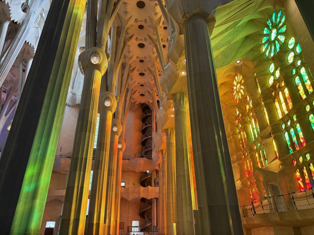 Ein weiteres Highlight unserer Spanien-Reise war die Besichtigung der Sagrada Família. In dem imposanten, im 19. Jahrhundert angefangenen und noch nicht vollendeten Bauwerk des Architekten Antoni Gaudí konnten wir über einen Audio-Guide viel über die Kathedrale erfahren. Hängengeblieben ist vielen von uns, wieviel Liebe im Detail in der Sagrada Familía steckt. Aber auch das eindrucksvolle Gesamtbauwerk mit seinem, durch die Fenster bunt durchfluteten Innenraum blieb uns positiv im Gedächtnis. Den Nachmittag und Abend ließen wir in Kleingruppen entweder in der Stadt oder am Meer entspannt ausklingen.