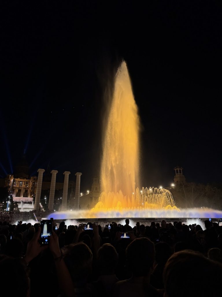 An unserem sechsten Tag unserer Reise haben wir uns mit einem Tagesausflug in die Berge Barcelonas begeben. Nachdem wir mit der Bergbahn am Kloster Montserrat angekommen sind, wurde uns erstmal berichtet, dass eine andere Bahn, welche wir eigentlich nehmen wollten, kaputt sei. Damit begann für uns jedoch eins der größten Highlights der Reise. Wir waren nämlich zum ersten Mal alle zusammen „wandern“ und haben die wunderschöne Aussicht genossen, die sich über dem Kloster Montserrat geboten hat. Oben haben wir dann eine kleine Mittagspause eingelegt und uns kurz ausgeruht. Nachdem alle wieder heile unten angekommen sind (manche geeigneter gekleidet als andere), haben wir uns in der Basilika des Klosters umgesehen. Diese war durch die goldene Verzierung sehr edel. Wir haben den Abend anschließend mit gemeinsamer Paella essen, einem Geburtstagsständchen und Wasserspielen an der Font Màgics de Montjuïc ausklingen lassen.